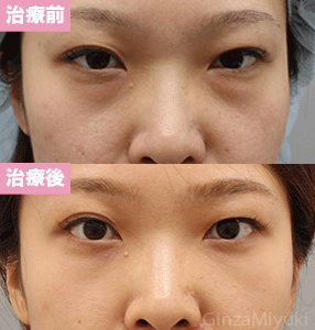 手術直後から2~3日間は目の下から頬にかけて腫れが出る場合があります。吸引部、並びに注入部は、内出血することがあります。